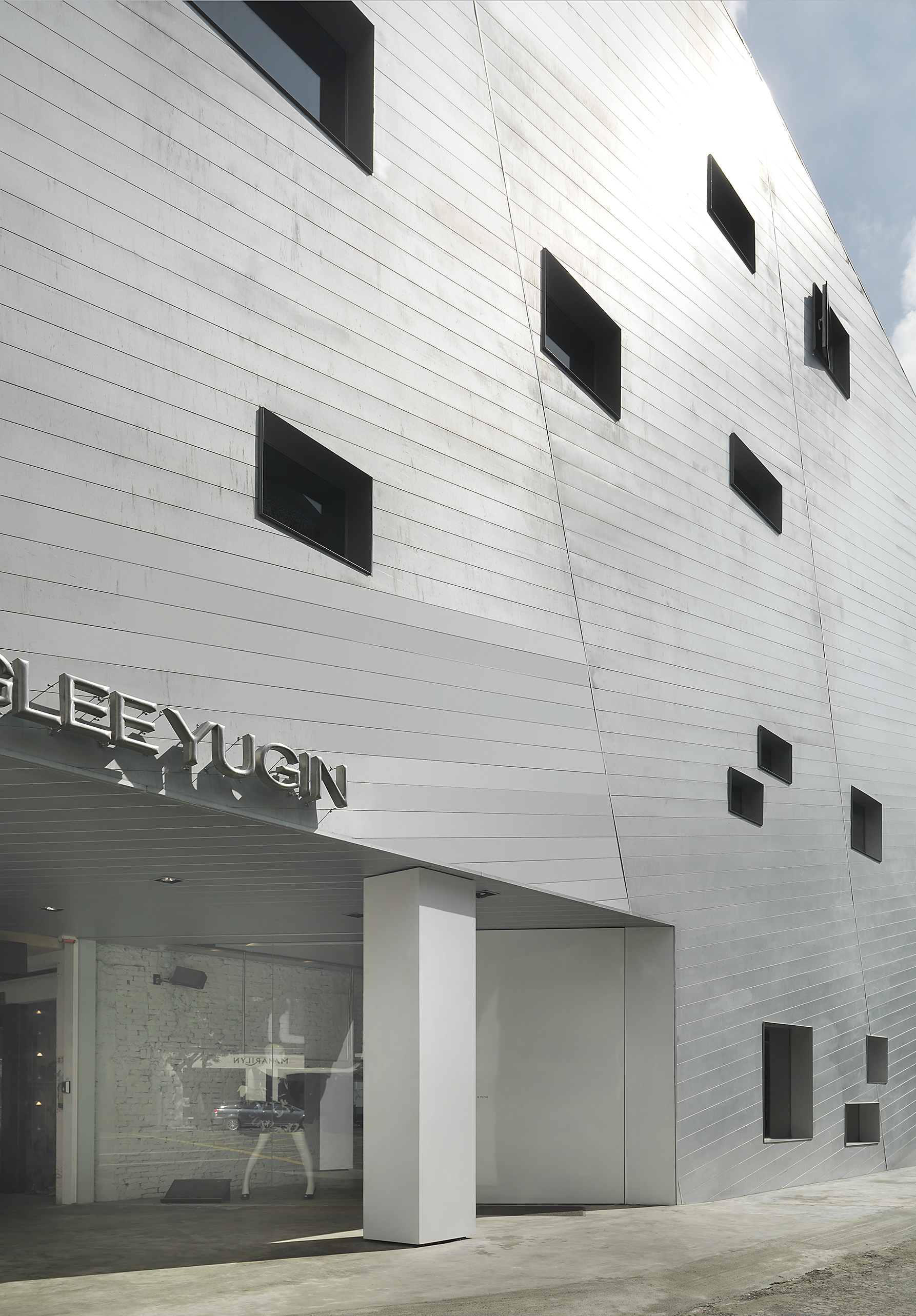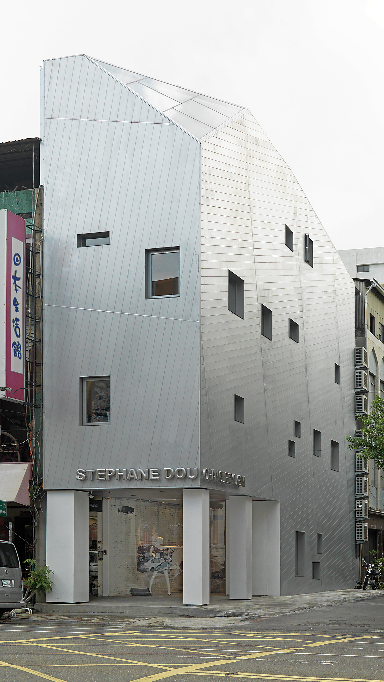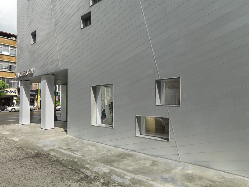This project is the concept store for the first STEPHANE DOU - CHANGLEE YUGIN fashion house in Kaohsiung. The outer appearance uses a galvanized steel structure to represent the image of twill.And using the lining and cutting on the grey surface with windows of various sizes arranged to bring the sense of an avant-garde boutique design.