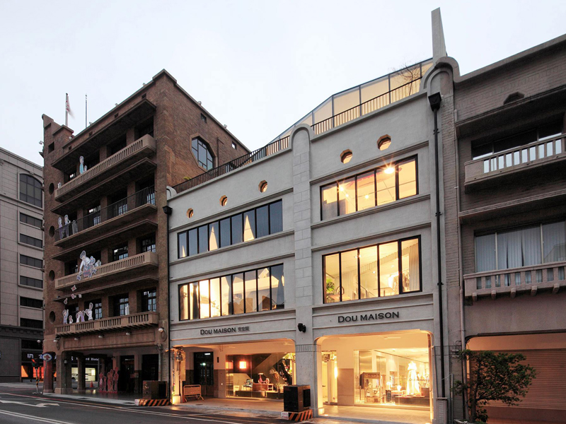 The project is located in Tainan, next to the Hayashi department store, the first department store in Taiwan. All the buildings on the street were built at the time when Taiwan was ruled by Japan. After a long while, Some were broken, and some roughly remained their original looks. The project happened to be flanked by two of these buildings that otherwise were preserved well but the building of the project itself was in severe condition. The design strategy adopted an approach of renovation for this historical building. By reclaiming the building's original elevation, it regained the integrality of the street, and reshaped the characteristics of the new age. The unfolding of this project over the urban context of Tainan revealed a social intention. This is a place where fashion meets culture and a historical dialogue emerges between Hayashi and Dou Maison along the refurbishment of the two. Meanwhile, it is also a statement that expresses the enthusiasm of Dou and Changlee about the bridging between fashion and humanities as well as the confidence in the development of fashion industries.